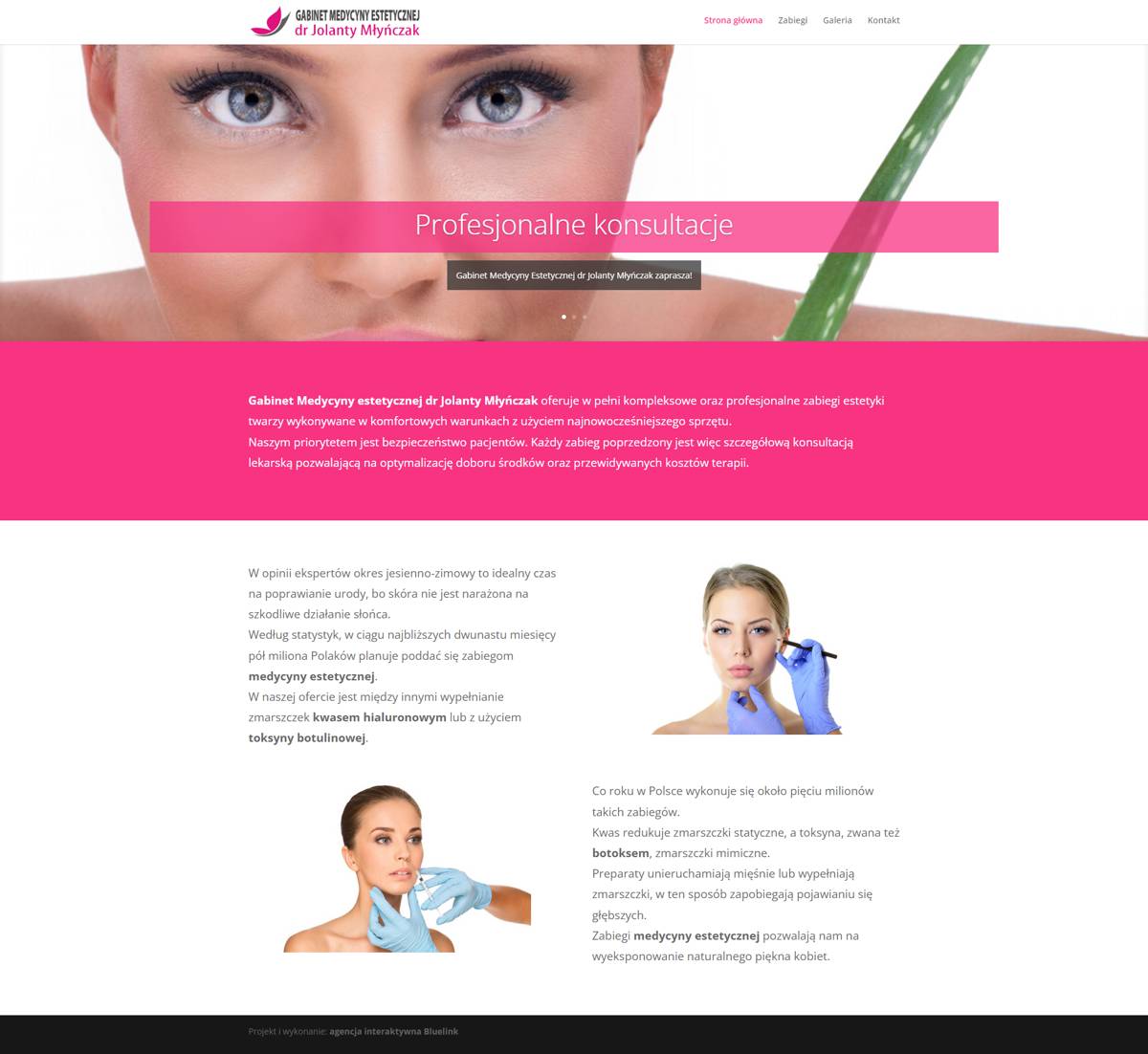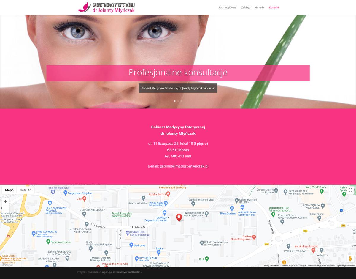 Responsywna strona internetowa zrealizowana na zlecenie Gabinetu Medycyny estetycznej dr Jolanty Młyńczak z Konina.