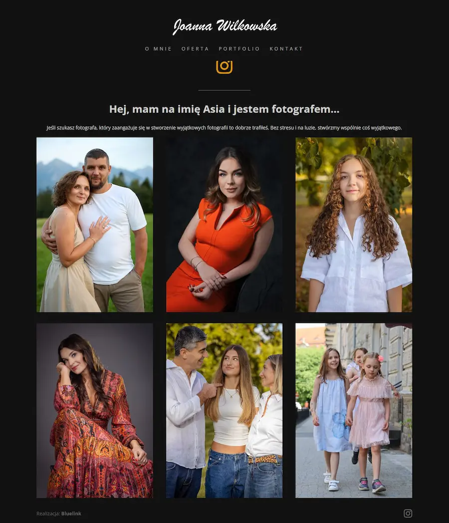 Responsywna strona internetowa prezentująca portfolio i ofertę fotograf Joanny Wilkowskiej.
