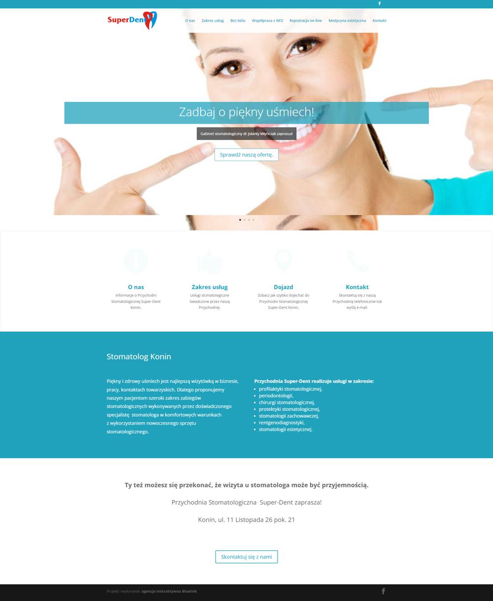 Responsywna strona internetowa zrealizowana na zlecenie Gabinetu Stomatologicznego SuperDent z Konina.